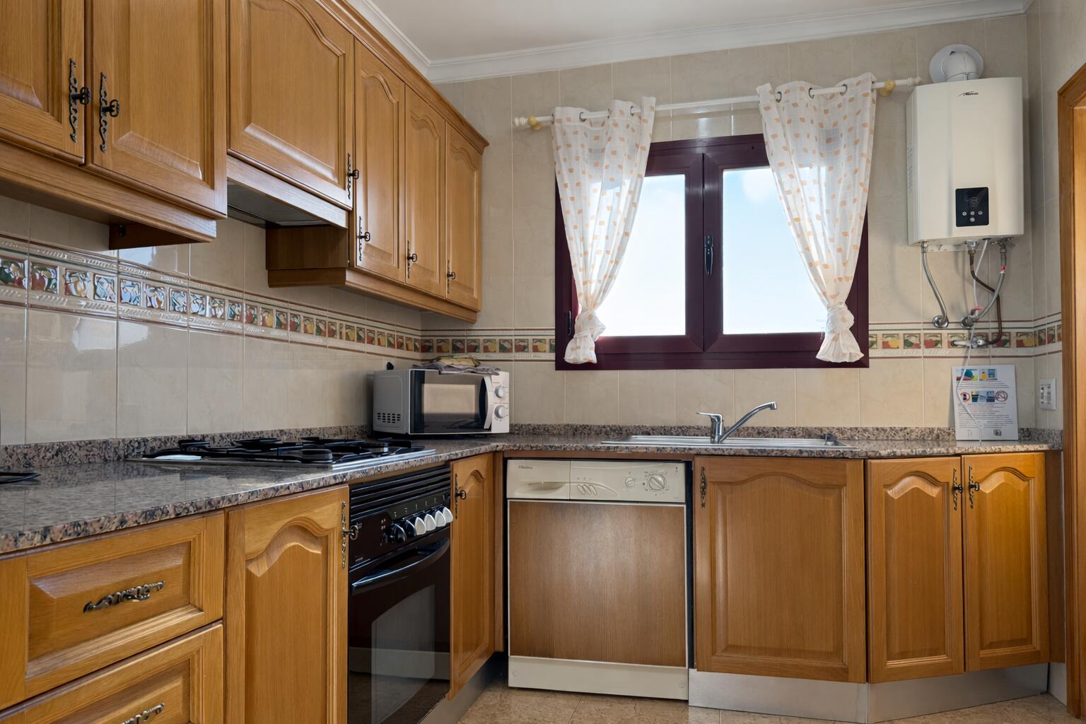 Primer apartamento: cuenta con tres dormitorios, salón-comedor, cocina equipada, baño completo y una terraza privada bañada por el sol.